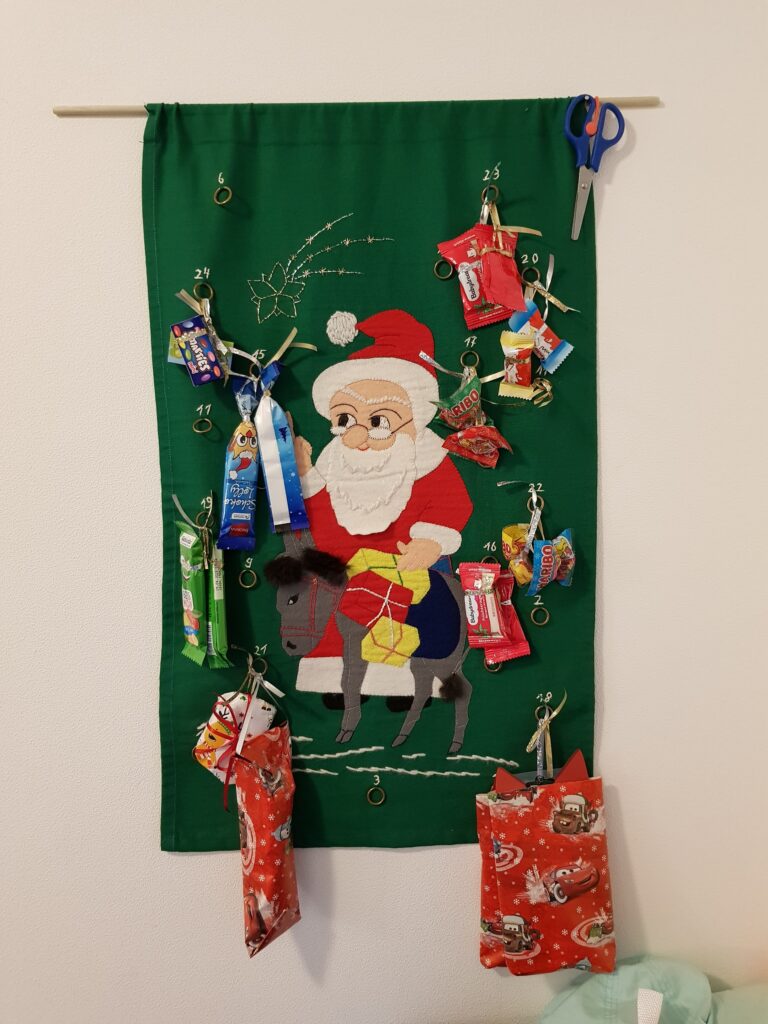 Mit Knallerbsen unter den Schuhen, bunter Milch im Kühlschrank, in Geschenkpapier eingepackten Butterbroten in der Brotdose für die Schule, Geschenkband als Schnürsenkel in den Schuhen oder kleinen Aufgaben versüße ich den Kindern die lange Vorweihnachtszeit.