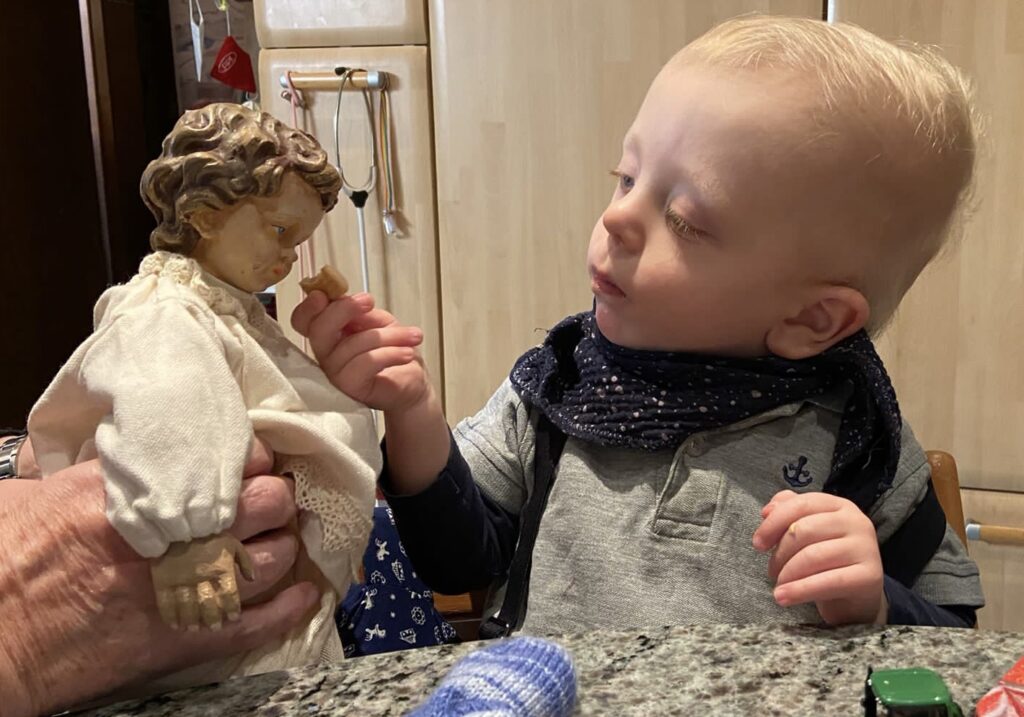 Seit über 20 Jahren darf ich, das Jesuskind aus der Krippe in St. Ludgerus, in der Adventszeit jeden Tag ein anderes Kind mit seiner Familie zu Hause besuchen. Am Heiligen Abend legt mich das Kind dann stolz in die Krippe. Endlich bin ich dann bei Mama und Papa.