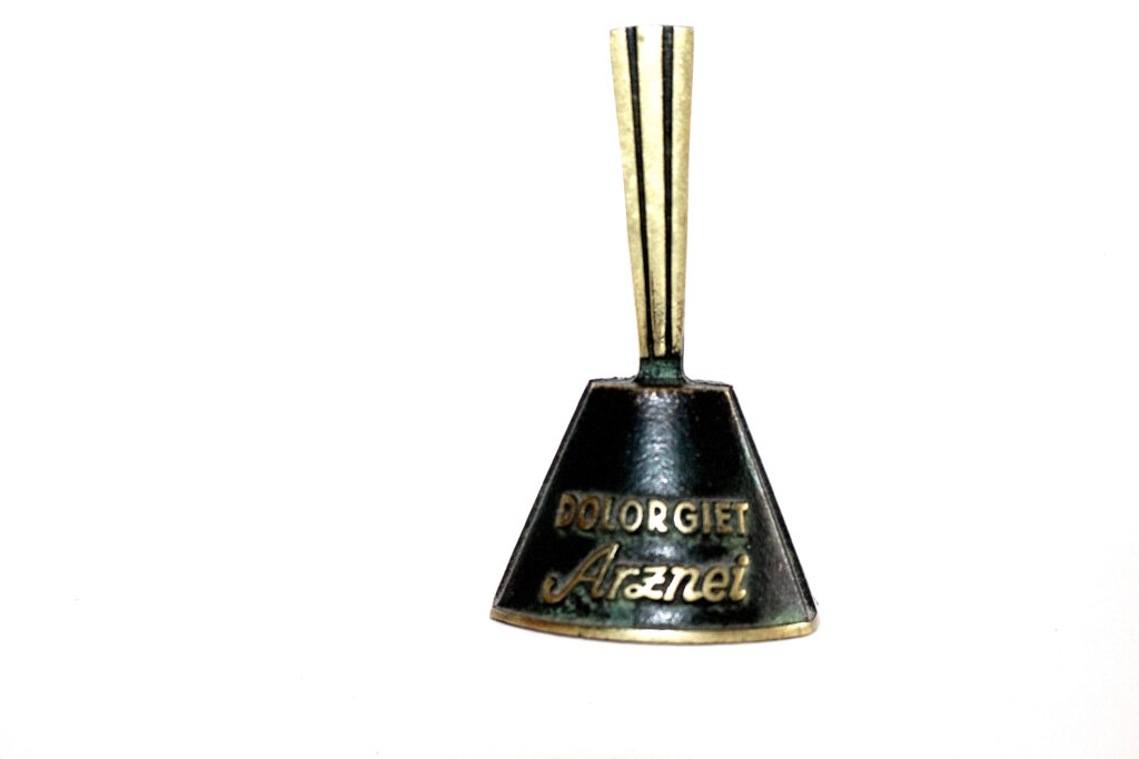 Ich bin ein Glöckchen mit einer langen Geschichte. Ursprünglich bin ich ein Werbegeschenk. Früher (wie lange ist das her?) bekamen Ärzte von den Pharmafirmen noch richtige Geschenke. So kam ich als ein solches eher bescheidenes Geschenk der Firma ‚Dolorgiet‘ in die Praxis von Marias Tante. Irgendwann landete ich dann im Haushalt von Maria. Und da begann dann meine zweite und auch längere Karriere, die bis heute andauert. Ich werde nämlich dazu benutzt, die Kinder und inzwischen auch die Enkelkinder am Heiligabend zur Bescherung zu rufen. Und in jedem Jahr freue ich mich an der Ungeduld von Groß und Klein. Selbst die Erwachsenen sind gespannt. Wahrscheinlich beachten sie mehr die Reaktionen der Kinder als die eigenen Geschenke.