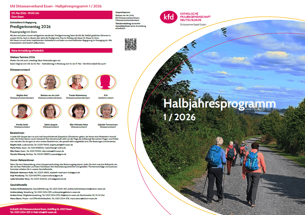 Unsere Veranstaltungen sind offen für alle Frauen, unabhängig von Mitgliedschaft, Religion und Konfession. Programmänderungen bleiben vorbehalten.